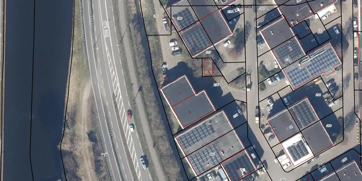 Het perceel waarop De Dollard 12 staat heeft een oppervlakte van 1585 m². Dit is een zeer groot perceel. De perceeloppervlakte wordt geregistreerd door het Kadaster. Gedetailleerde informatie over de maten van dit perceel kunt u vinden in het rapport Kadastrale kaart met maatvoering van De Dollard 12.