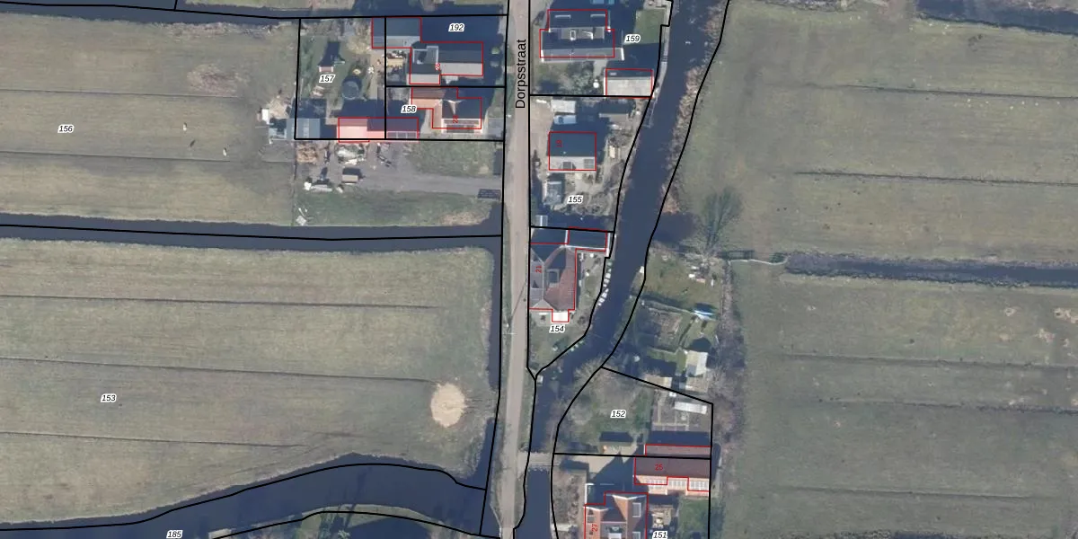 Het perceel waarop Dorpsstraat 21 staat heeft een oppervlakte van 300 m². Dit is een groot perceel. De perceeloppervlakte wordt geregistreerd door het Kadaster. Gedetailleerde informatie over de maten van dit perceel kunt u vinden in het rapport Kadastrale kaart met maatvoering van Dorpsstraat 21.