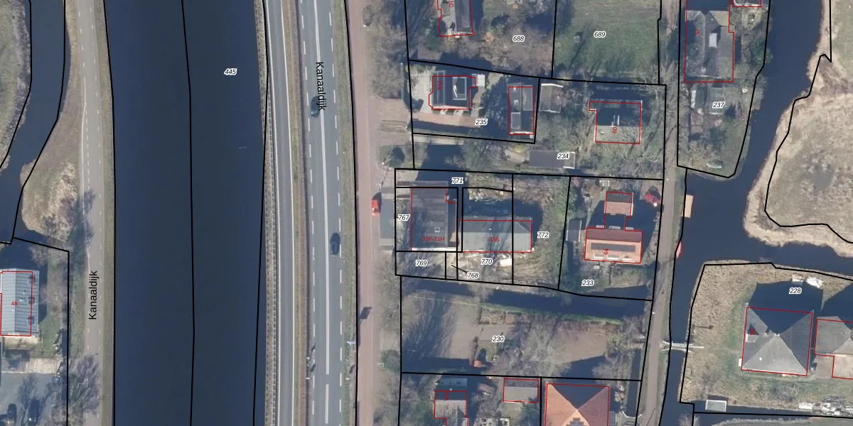 Het perceel waarop Kanaaldijk 31-G staat heeft een oppervlakte van 221 m². Dit is een middelgroot perceel. De perceeloppervlakte wordt geregistreerd door het Kadaster. Gedetailleerde informatie over de maten van dit perceel kunt u vinden in het rapport Kadastrale kaart met maatvoering van Kanaaldijk 31-G.