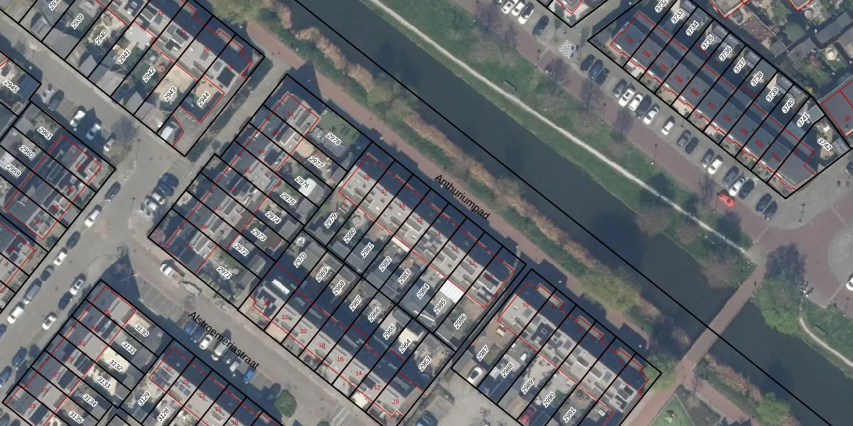 Het perceel waarop Anthuriumpad 15 staat heeft een oppervlakte van 142 m². Dit is een middelgroot perceel. De perceeloppervlakte wordt geregistreerd door het Kadaster. Gedetailleerde informatie over de maten van dit perceel kunt u vinden in het rapport Kadastrale kaart met maatvoering van Anthuriumpad 15.