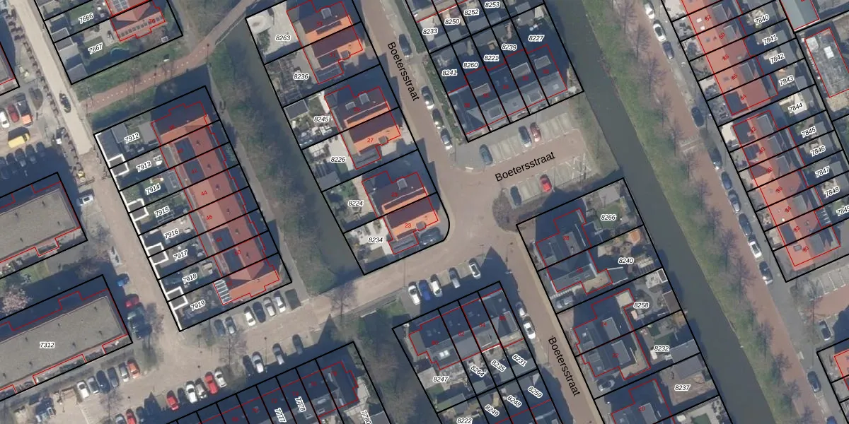 Boetersstraat 23 is gelegen op kadastraal perceel WTR00A8234. Deze kadastrale aanduiding is uniek en wordt gebruikt door het Kadaster om eigendomsrechten en andere zakelijke rechten vast te leggen. Het perceel maakt onderdeel uit van de kadastrale gemeente Wateringen.