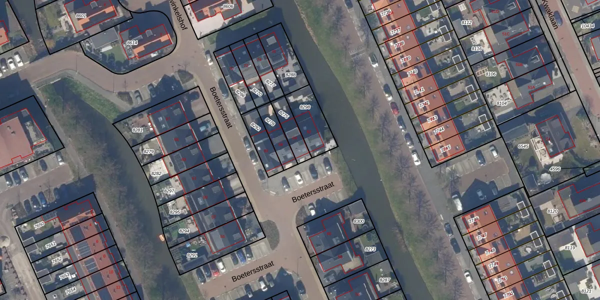 Boetersstraat 64 is gelegen op kadastraal perceel WTR00A8275. Deze kadastrale aanduiding is uniek en wordt gebruikt door het Kadaster om eigendomsrechten en andere zakelijke rechten vast te leggen. Het perceel maakt onderdeel uit van de kadastrale gemeente Wateringen.