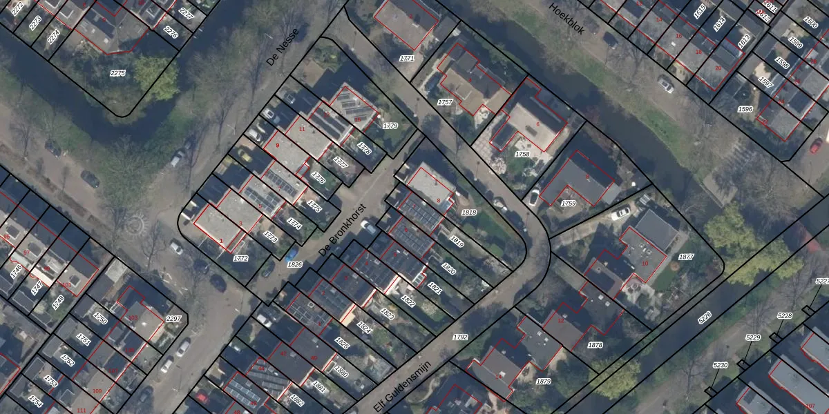 Gebruik de zoekbalk of klik op een perceel voor informatie over de adressen binnen dit perceel.