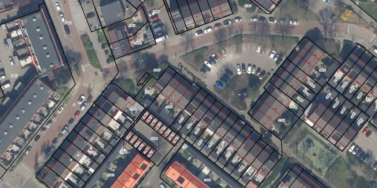 Het perceel waarop De Frankenthaler 7 staat heeft een oppervlakte van 401 m². Dit is een groot perceel. De perceeloppervlakte wordt geregistreerd door het Kadaster. Gedetailleerde informatie over de maten van dit perceel kunt u vinden in het rapport Kadastrale kaart met maatvoering van De Frankenthaler 7.