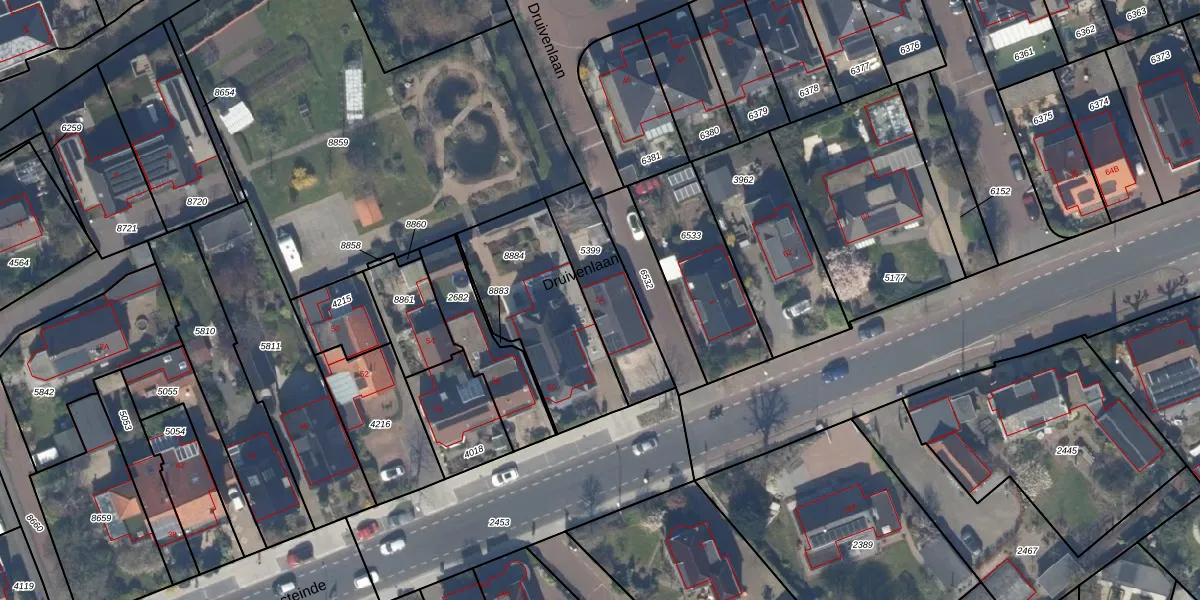 Het perceel waarop Druivenlaan 1-A staat heeft een oppervlakte van 305 m². Dit is een groot perceel. De perceeloppervlakte wordt geregistreerd door het Kadaster. Gedetailleerde informatie over de maten van dit perceel kunt u vinden in het rapport Kadastrale kaart met maatvoering van Druivenlaan 1-A.