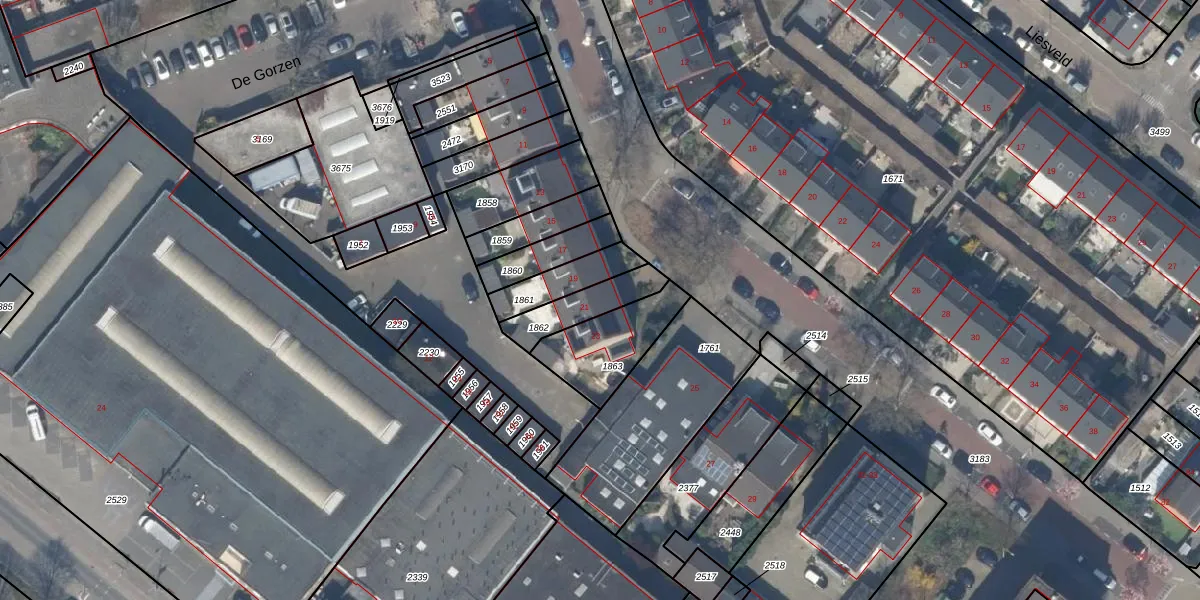 Gebruik de zoekbalk of klik op een perceel voor informatie over de adressen binnen dit perceel.