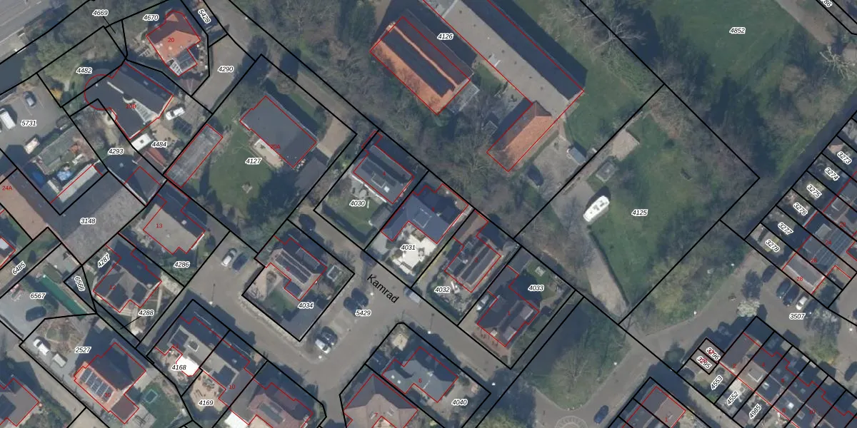 Het perceel waarop Kamrad 3 staat heeft een oppervlakte van 335 m². Dit is een groot perceel. De perceeloppervlakte wordt geregistreerd door het Kadaster. Gedetailleerde informatie over de maten van dit perceel kunt u vinden in het rapport Kadastrale kaart met maatvoering van Kamrad 3.