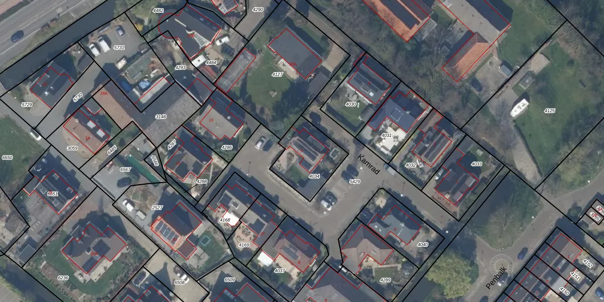Het perceel waarop Kamrad 5 staat heeft een oppervlakte van 384 m². Dit is een groot perceel. De perceeloppervlakte wordt geregistreerd door het Kadaster. Gedetailleerde informatie over de maten van dit perceel kunt u vinden in het rapport Kadastrale kaart met maatvoering van Kamrad 5.