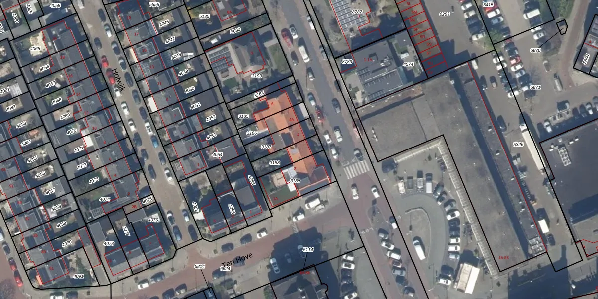 Het adres is gelegen op perceel 3188 in de sectie A en de kadastrale gemeente Wateringen. De kadastrale aanduiding is aldus WTR00-A-3188. Het perceel is kleiner dan gemiddeld in Wateringen. Het perceel is 146 m² groot, terwijl het gemiddelde ligt op 1049,05 m². De grootste perceeloppervlakte in de kadastrale gemeente is 8,7 ha. De kleinste oppervlakte bedraagt 0 m². Er zijn geen andere adressen aanwezig op het perceel. De laatste wijziging in het de Basisregistratie Kadaster (BRK) was op 19-05-1998.