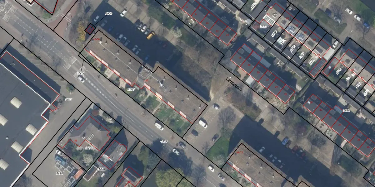 Het perceel waarop Lenteblok 29 staat heeft een oppervlakte van 1374 m². Dit is een zeer groot perceel. De perceeloppervlakte wordt geregistreerd door het Kadaster. Gedetailleerde informatie over de maten van dit perceel kunt u vinden in het rapport Kadastrale kaart met maatvoering van Lenteblok 29.