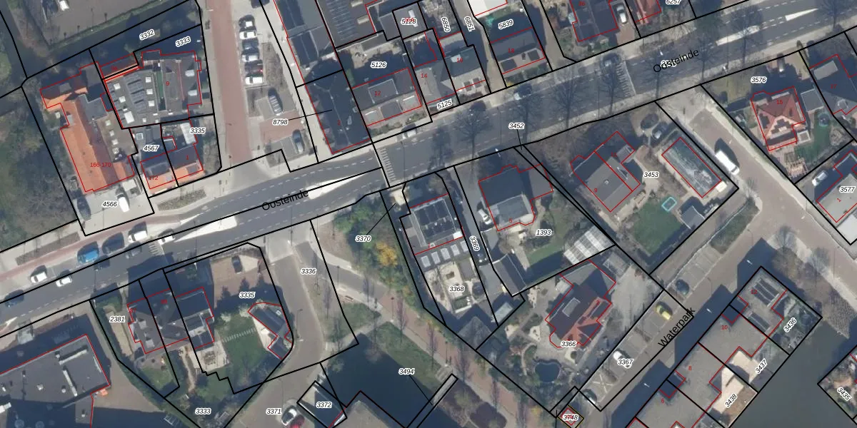 Oosteinde 1 is gelegen op kadastraal perceel WTR00B3368. Deze kadastrale aanduiding is uniek en wordt gebruikt door het Kadaster om eigendomsrechten en andere zakelijke rechten vast te leggen. Het perceel maakt onderdeel uit van de kadastrale gemeente Wateringen.