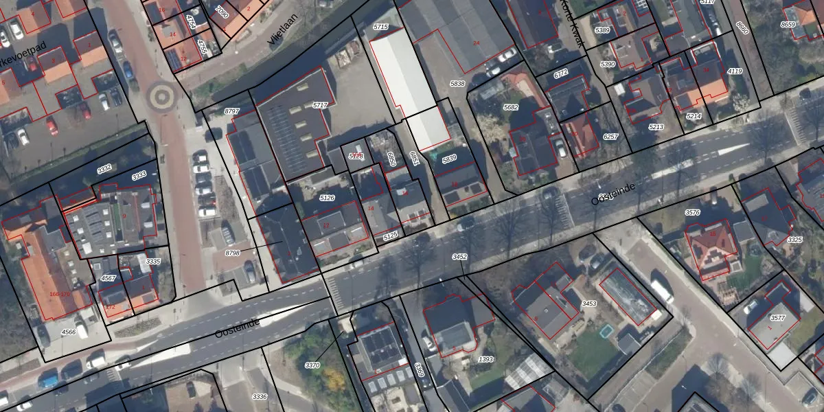 Het perceel waarop Oosteinde 16 staat heeft een oppervlakte van 179 m². Dit is een middelgroot perceel. De perceeloppervlakte wordt geregistreerd door het Kadaster. Gedetailleerde informatie over de maten van dit perceel kunt u vinden in het rapport Kadastrale kaart met maatvoering van Oosteinde 16.