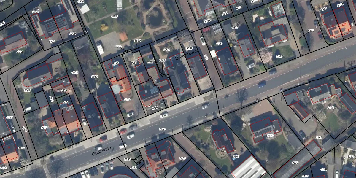 Het perceel waarop Oosteinde 60 staat heeft een oppervlakte van 534 m². Dit is een groot perceel. De perceeloppervlakte wordt geregistreerd door het Kadaster. Gedetailleerde informatie over de maten van dit perceel kunt u vinden in het rapport Kadastrale kaart met maatvoering van Oosteinde 60.