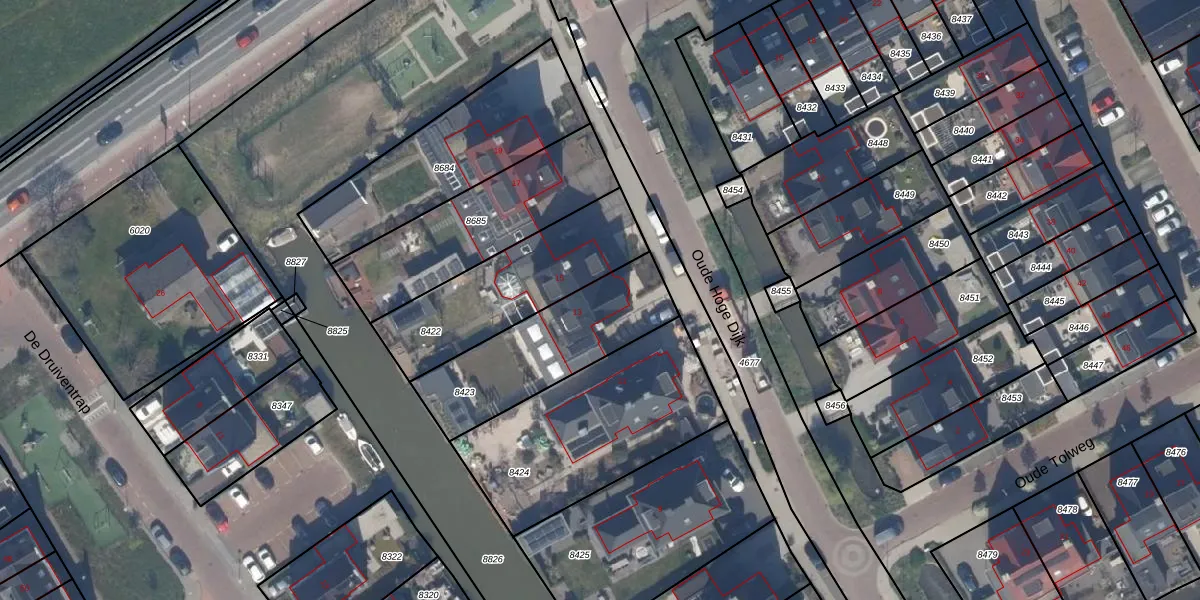 Het perceel waarop Oude Hoge Dijk 13 staat heeft een oppervlakte van 529 m². Dit is een groot perceel. De perceeloppervlakte wordt geregistreerd door het Kadaster. Gedetailleerde informatie over de maten van dit perceel kunt u vinden in het rapport Kadastrale kaart met maatvoering van Oude Hoge Dijk 13.
