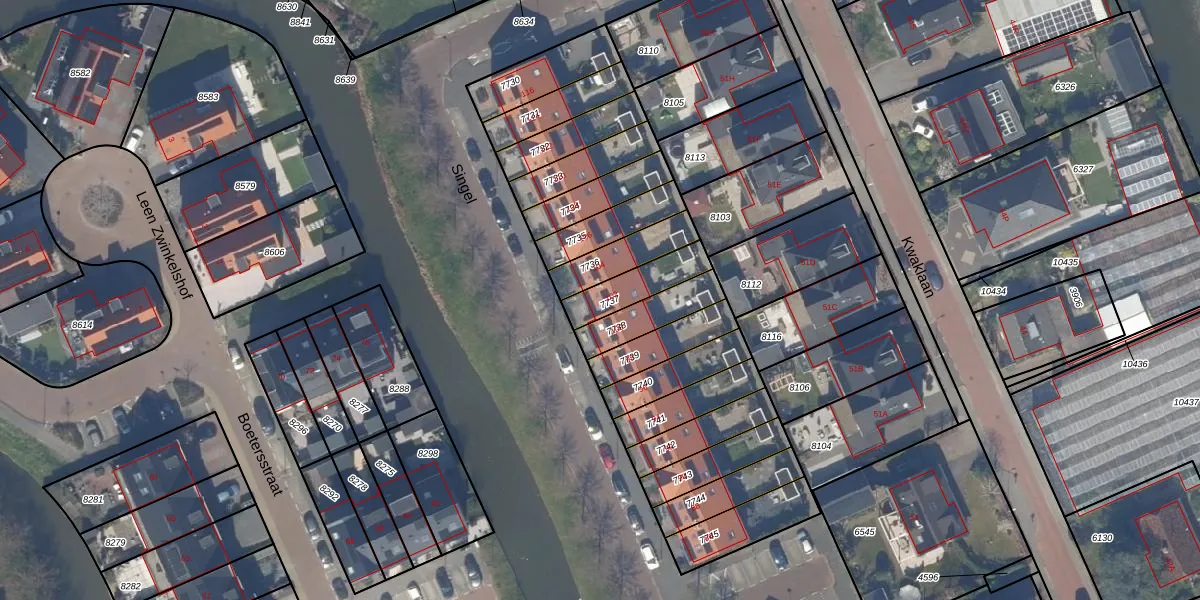 Singel 102 is gelegen op kadastraal perceel WTR00A7737. Deze kadastrale aanduiding is uniek en wordt gebruikt door het Kadaster om eigendomsrechten en andere zakelijke rechten vast te leggen. Het perceel maakt onderdeel uit van de kadastrale gemeente Wateringen.
