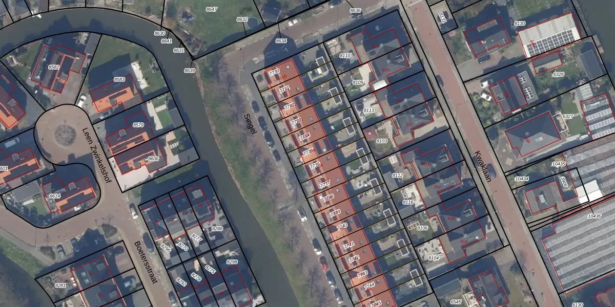 Het perceel waarop Singel 106 staat heeft een oppervlakte van 136 m². Dit is een middelgroot perceel. De perceeloppervlakte wordt geregistreerd door het Kadaster. Gedetailleerde informatie over de maten van dit perceel kunt u vinden in het rapport Kadastrale kaart met maatvoering van Singel 106.