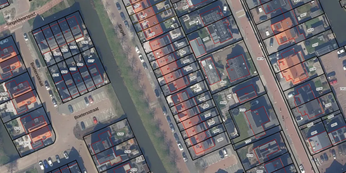 Het perceel waarop Singel 44 staat heeft een oppervlakte van 169 m². Dit is een middelgroot perceel. De perceeloppervlakte wordt geregistreerd door het Kadaster. Gedetailleerde informatie over de maten van dit perceel kunt u vinden in het rapport Kadastrale kaart met maatvoering van Singel 44.