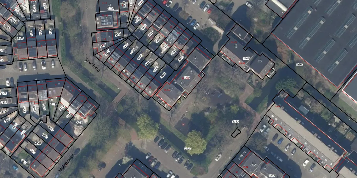 Het perceel waarop Spantring 41 staat heeft een oppervlakte van 504 m². Dit is een groot perceel. De perceeloppervlakte wordt geregistreerd door het Kadaster. Gedetailleerde informatie over de maten van dit perceel kunt u vinden in het rapport Kadastrale kaart met maatvoering van Spantring 41.
