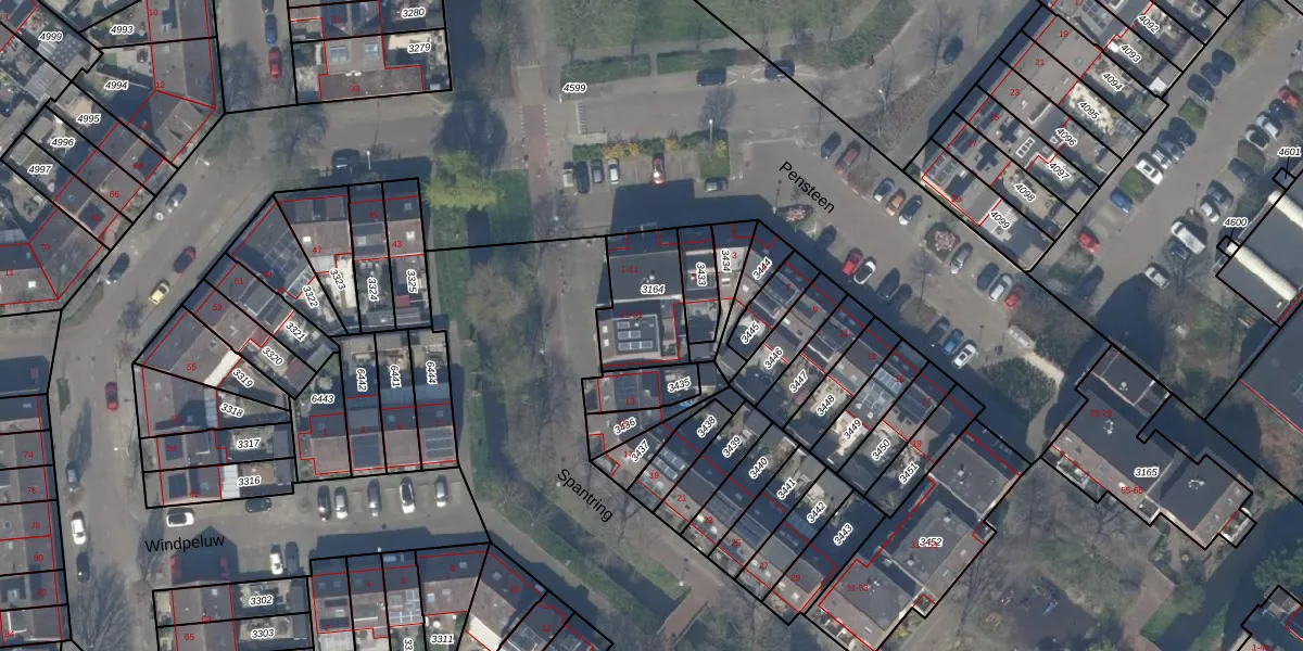 Het perceel waarop Spantring 5 staat heeft een oppervlakte van 255 m². Dit is een middelgroot perceel. De perceeloppervlakte wordt geregistreerd door het Kadaster. Gedetailleerde informatie over de maten van dit perceel kunt u vinden in het rapport Kadastrale kaart met maatvoering van Spantring 5.
