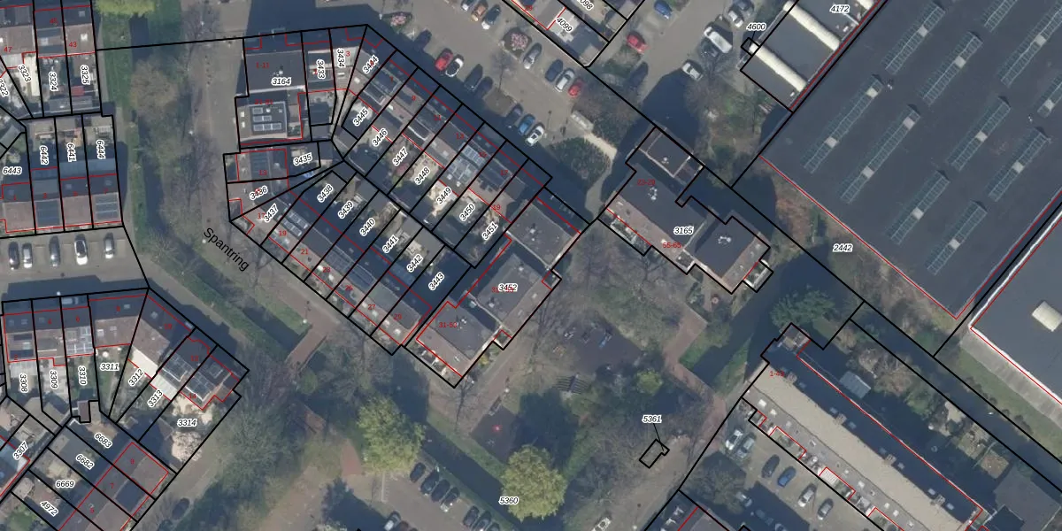 Het perceel waarop Spantring 53 staat heeft een oppervlakte van 504 m². Dit is een groot perceel. De perceeloppervlakte wordt geregistreerd door het Kadaster. Gedetailleerde informatie over de maten van dit perceel kunt u vinden in het rapport Kadastrale kaart met maatvoering van Spantring 53.