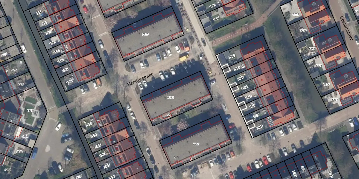 Tieratesstraat 14 is gelegen op kadastraal perceel WTR00A7311. Deze kadastrale aanduiding is uniek en wordt gebruikt door het Kadaster om eigendomsrechten en andere zakelijke rechten vast te leggen. Het perceel maakt onderdeel uit van de kadastrale gemeente Wateringen.