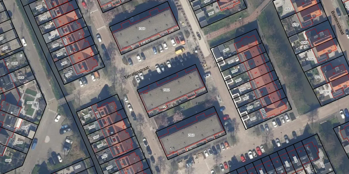Tieratesstraat 18 is gelegen op kadastraal perceel WTR00A7311. Deze kadastrale aanduiding is uniek en wordt gebruikt door het Kadaster om eigendomsrechten en andere zakelijke rechten vast te leggen. Het perceel maakt onderdeel uit van de kadastrale gemeente Wateringen.