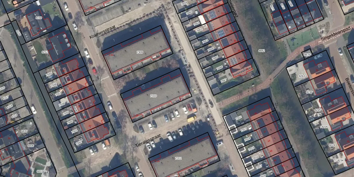 Tieratesstraat 21 is gelegen op kadastraal perceel WTR00A7310. Deze kadastrale aanduiding is uniek en wordt gebruikt door het Kadaster om eigendomsrechten en andere zakelijke rechten vast te leggen. Het perceel maakt onderdeel uit van de kadastrale gemeente Wateringen.