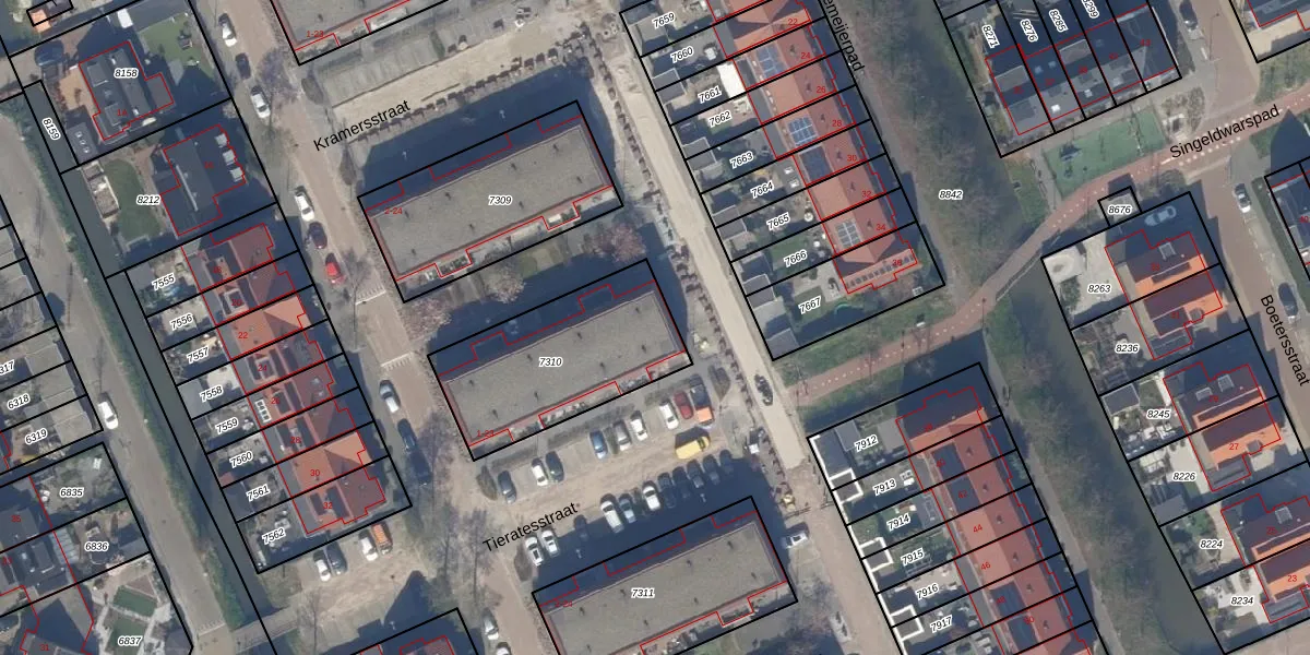 Tieratesstraat 23 is gelegen op kadastraal perceel WTR00A7310. Deze kadastrale aanduiding is uniek en wordt gebruikt door het Kadaster om eigendomsrechten en andere zakelijke rechten vast te leggen. Het perceel maakt onderdeel uit van de kadastrale gemeente Wateringen.