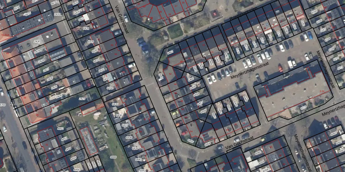 Het perceel waarop Van Gochstraat 44 staat heeft een oppervlakte van 126 m². Dit is een middelgroot perceel. De perceeloppervlakte wordt geregistreerd door het Kadaster. Gedetailleerde informatie over de maten van dit perceel kunt u vinden in het rapport Kadastrale kaart met maatvoering van Van Gochstraat 44.