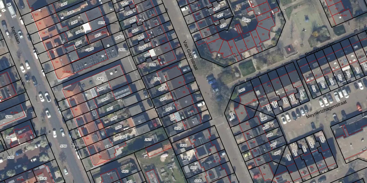 Het perceel waarop Van Gochstraat 55 staat heeft een oppervlakte van 155 m². Dit is een middelgroot perceel. De perceeloppervlakte wordt geregistreerd door het Kadaster. Gedetailleerde informatie over de maten van dit perceel kunt u vinden in het rapport Kadastrale kaart met maatvoering van Van Gochstraat 55.