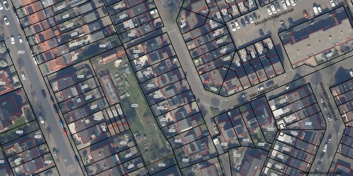 Het perceel waarop Van Gochstraat 71 staat heeft een oppervlakte van 182 m². Dit is een middelgroot perceel. De perceeloppervlakte wordt geregistreerd door het Kadaster. Gedetailleerde informatie over de maten van dit perceel kunt u vinden in het rapport Kadastrale kaart met maatvoering van Van Gochstraat 71.