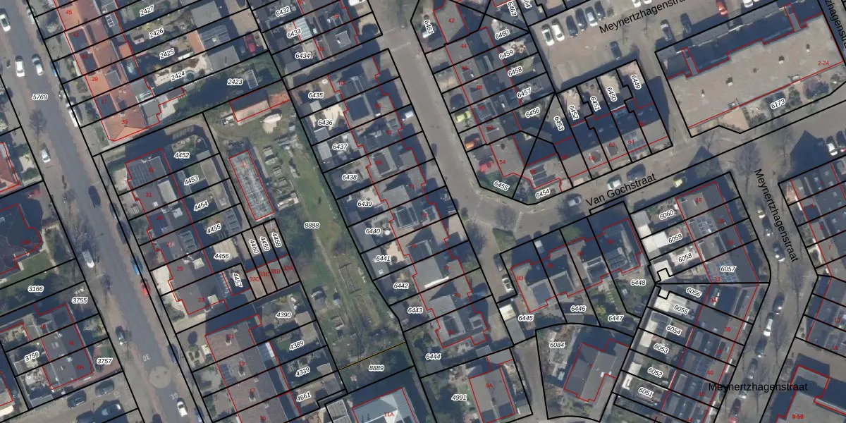 Het perceel waarop Van Gochstraat 73 staat heeft een oppervlakte van 181 m². Dit is een middelgroot perceel. De perceeloppervlakte wordt geregistreerd door het Kadaster. Gedetailleerde informatie over de maten van dit perceel kunt u vinden in het rapport Kadastrale kaart met maatvoering van Van Gochstraat 73.