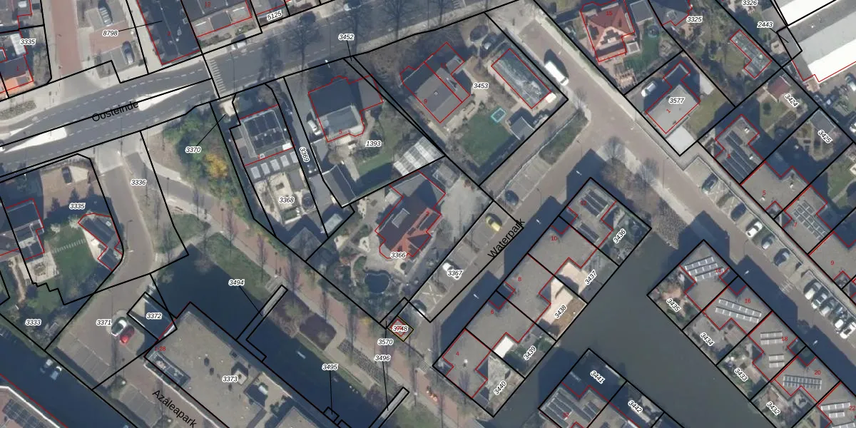 Het perceel waarop Waterpark 2 staat heeft een oppervlakte van 850 m². Dit is een groot perceel. De perceeloppervlakte wordt geregistreerd door het Kadaster. Gedetailleerde informatie over de maten van dit perceel kunt u vinden in het rapport Kadastrale kaart met maatvoering van Waterpark 2.