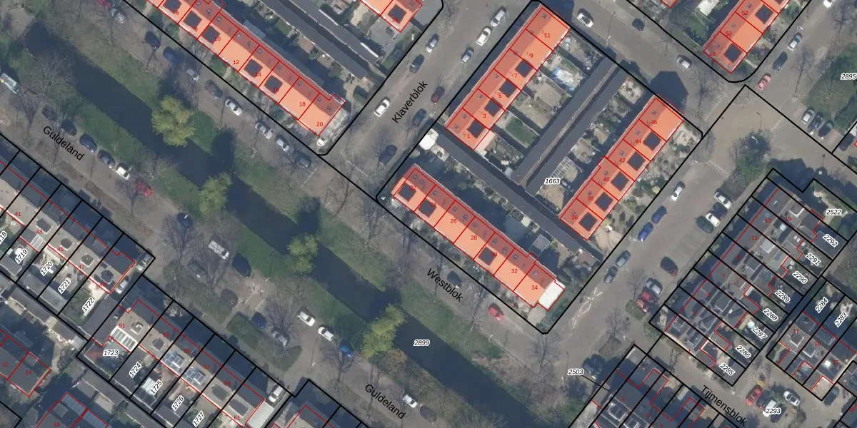 Het perceel waarop Westblok 24 staat heeft een oppervlakte van 3082 m². Dit is een zeer groot perceel. De perceeloppervlakte wordt geregistreerd door het Kadaster. Gedetailleerde informatie over de maten van dit perceel kunt u vinden in het rapport Kadastrale kaart met maatvoering van Westblok 24.