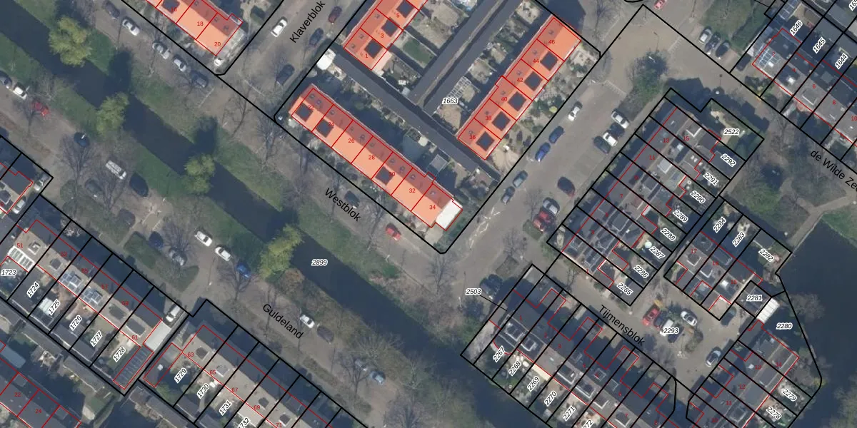 Het perceel waarop Westblok 34 staat heeft een oppervlakte van 3082 m². Dit is een zeer groot perceel. De perceeloppervlakte wordt geregistreerd door het Kadaster. Gedetailleerde informatie over de maten van dit perceel kunt u vinden in het rapport Kadastrale kaart met maatvoering van Westblok 34.