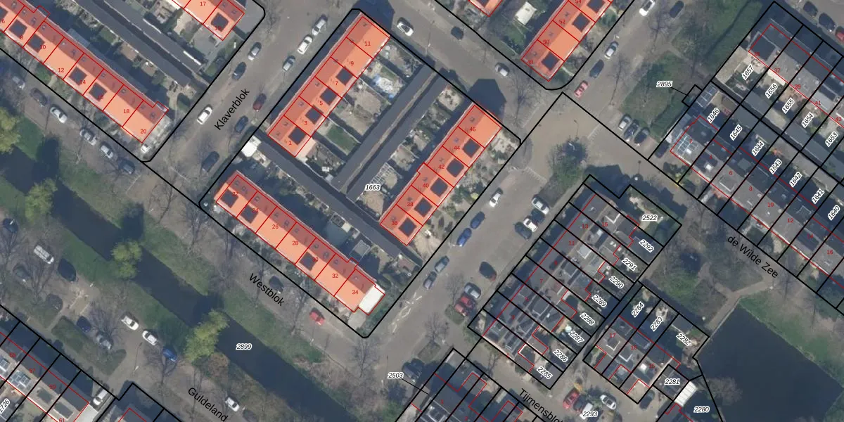 Het perceel waarop Westblok 38 staat heeft een oppervlakte van 3082 m². Dit is een zeer groot perceel. De perceeloppervlakte wordt geregistreerd door het Kadaster. Gedetailleerde informatie over de maten van dit perceel kunt u vinden in het rapport Kadastrale kaart met maatvoering van Westblok 38.