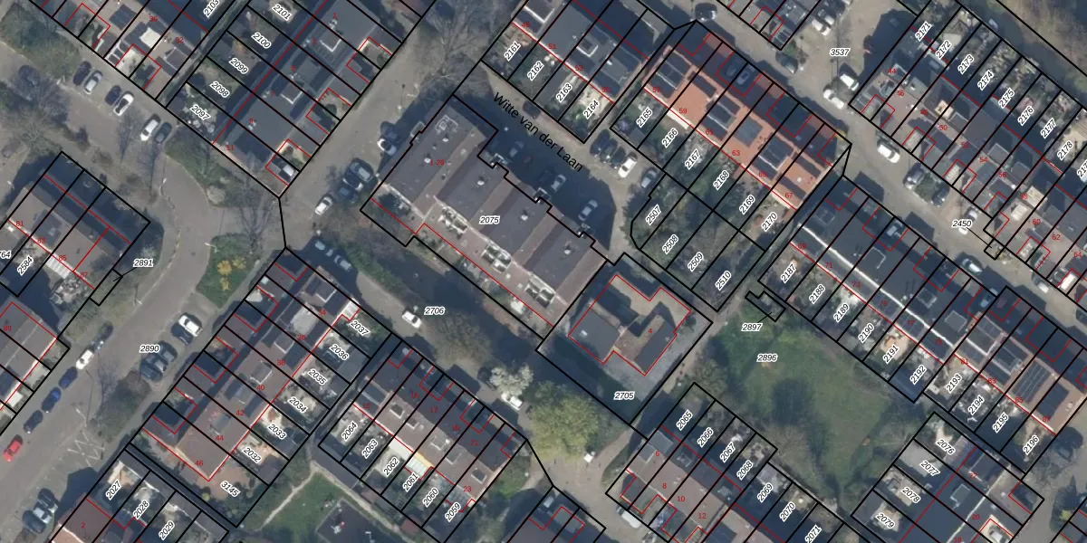 Het perceel waarop Witte van der Laan 25 staat heeft een oppervlakte van 880 m². Dit is een groot perceel. De perceeloppervlakte wordt geregistreerd door het Kadaster. Gedetailleerde informatie over de maten van dit perceel kunt u vinden in het rapport Kadastrale kaart met maatvoering van Witte van der Laan 25.
