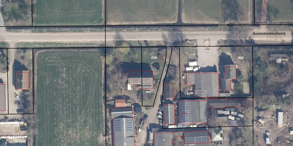 Botsholsedwarsweg 21 is gelegen op kadastraal perceel WVV00B2882. Deze kadastrale aanduiding is uniek en wordt gebruikt door het Kadaster om eigendomsrechten en andere zakelijke rechten vast te leggen. Het perceel maakt onderdeel uit van de kadastrale gemeente Waverveen.