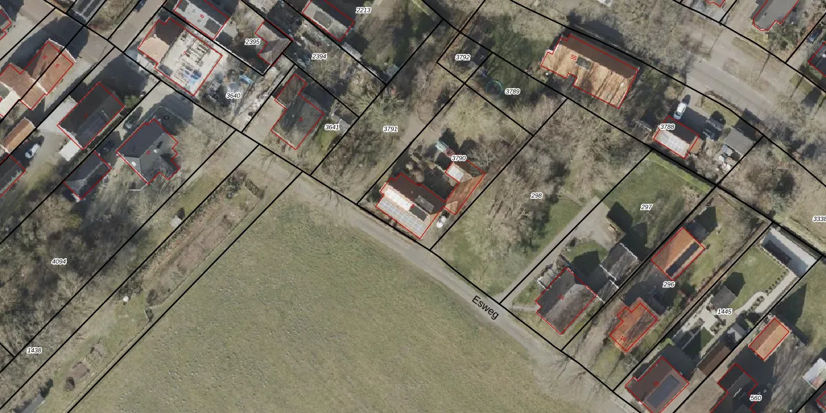 Esweg 8 is gelegen op kadastraal perceel WDE03D3790. Deze kadastrale aanduiding is uniek en wordt gebruikt door het Kadaster om eigendomsrechten en andere zakelijke rechten vast te leggen. Het perceel maakt onderdeel uit van de kadastrale gemeente Wedde.