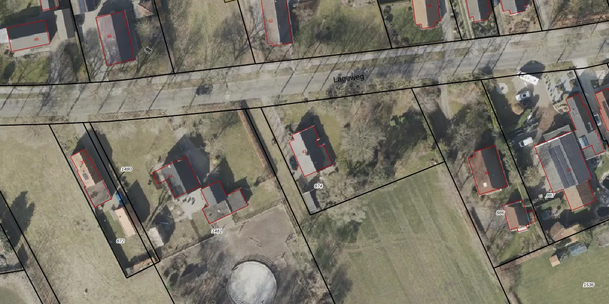 Lageweg 47 is gelegen op kadastraal perceel WDE03K874. Deze kadastrale aanduiding is uniek en wordt gebruikt door het Kadaster om eigendomsrechten en andere zakelijke rechten vast te leggen. Het perceel maakt onderdeel uit van de kadastrale gemeente Wedde.