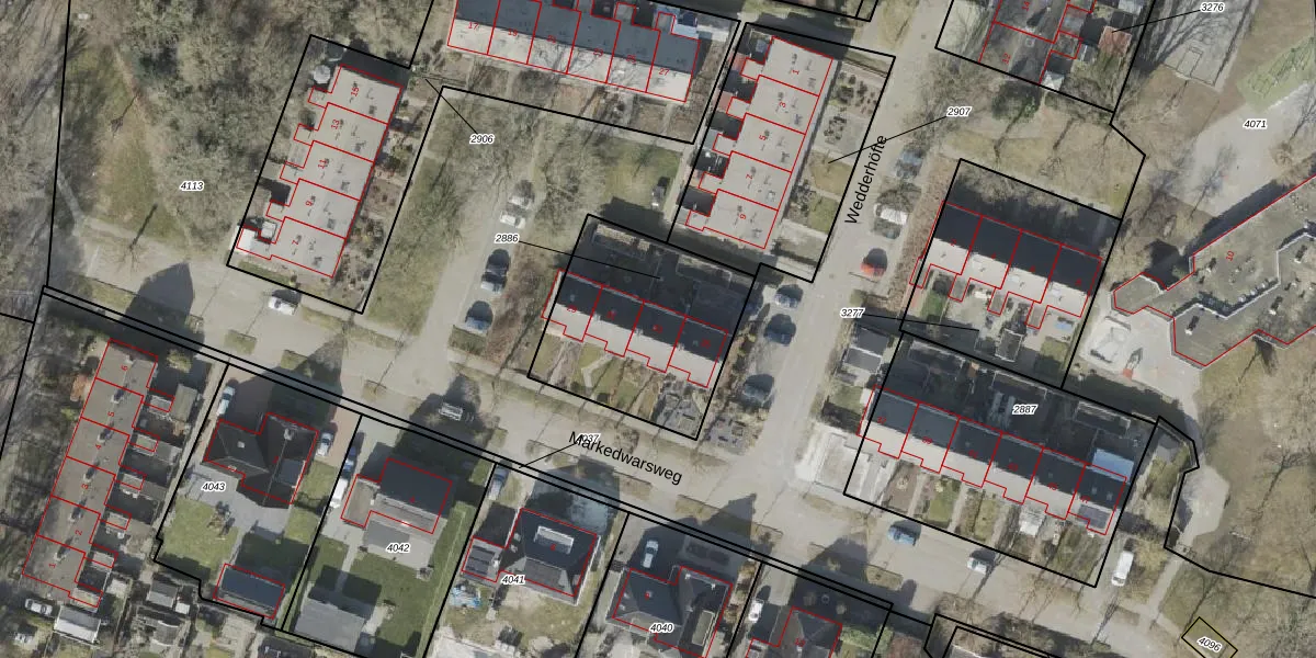 Markedwarsweg 33 is gelegen op kadastraal perceel WDE03D2886. Deze kadastrale aanduiding is uniek en wordt gebruikt door het Kadaster om eigendomsrechten en andere zakelijke rechten vast te leggen. Het perceel maakt onderdeel uit van de kadastrale gemeente Wedde.
