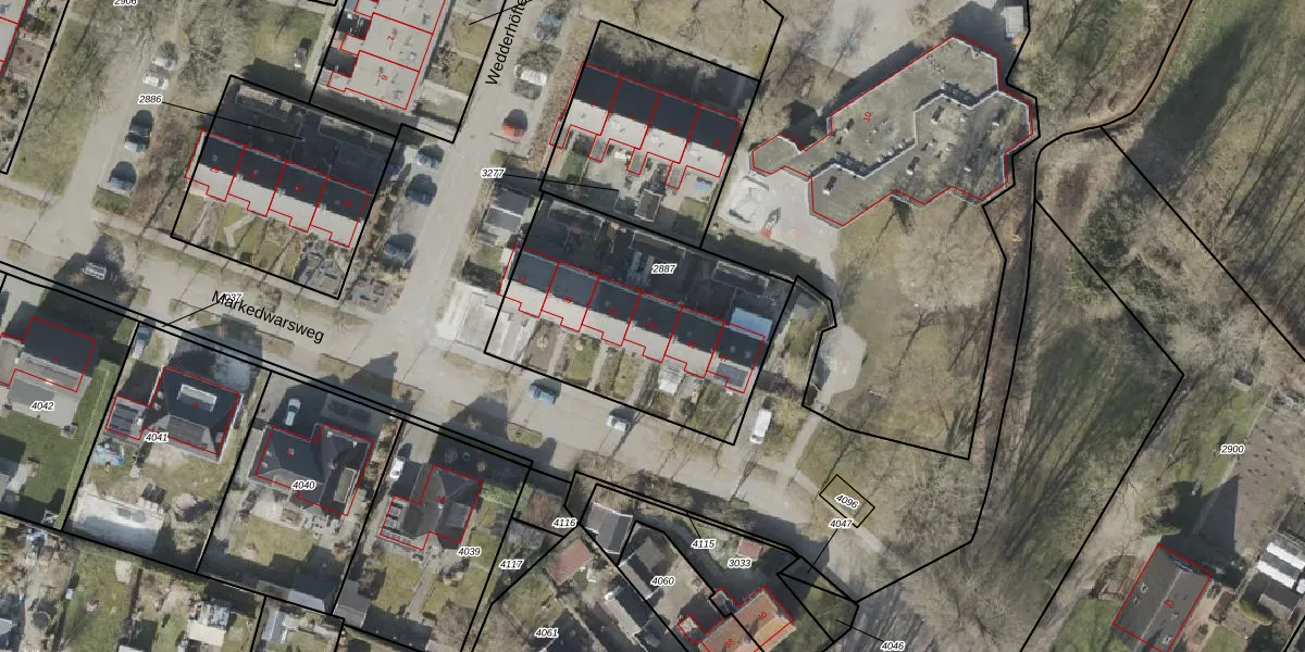 Markedwarsweg 43 is gelegen op kadastraal perceel WDE03D2887. Deze kadastrale aanduiding is uniek en wordt gebruikt door het Kadaster om eigendomsrechten en andere zakelijke rechten vast te leggen. Het perceel maakt onderdeel uit van de kadastrale gemeente Wedde.