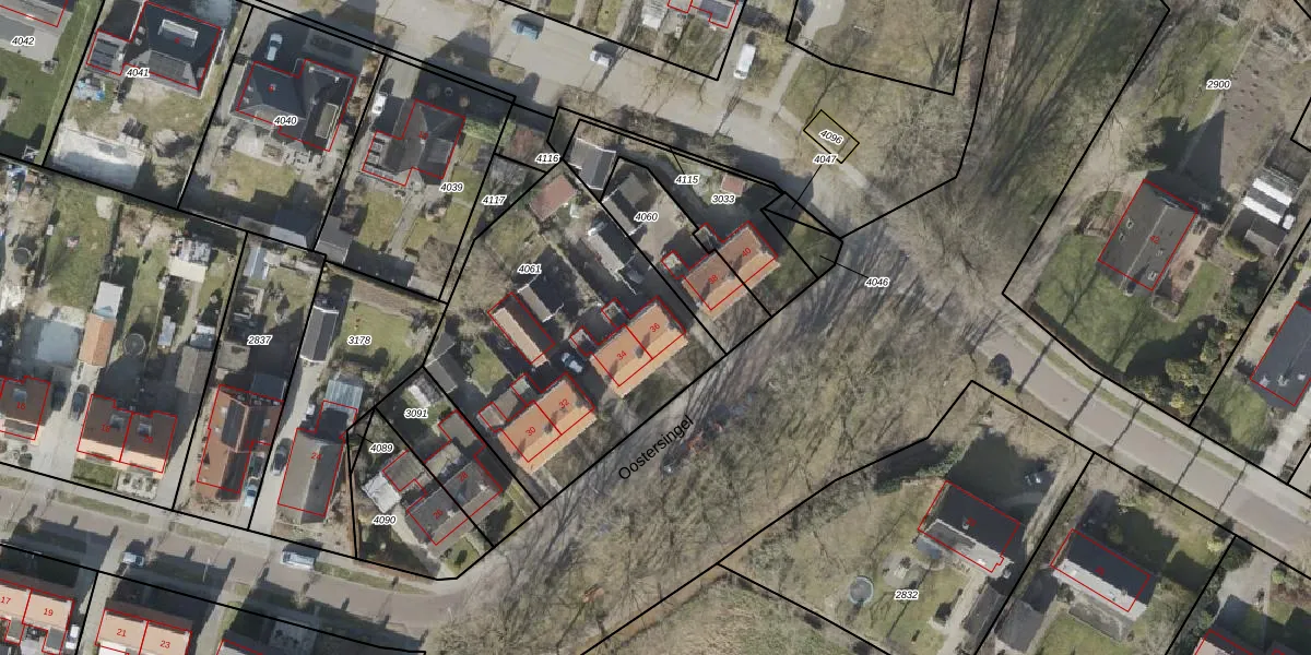 Oostersingel 36 is gelegen op kadastraal perceel WDE03D4061. Deze kadastrale aanduiding is uniek en wordt gebruikt door het Kadaster om eigendomsrechten en andere zakelijke rechten vast te leggen. Het perceel maakt onderdeel uit van de kadastrale gemeente Wedde.