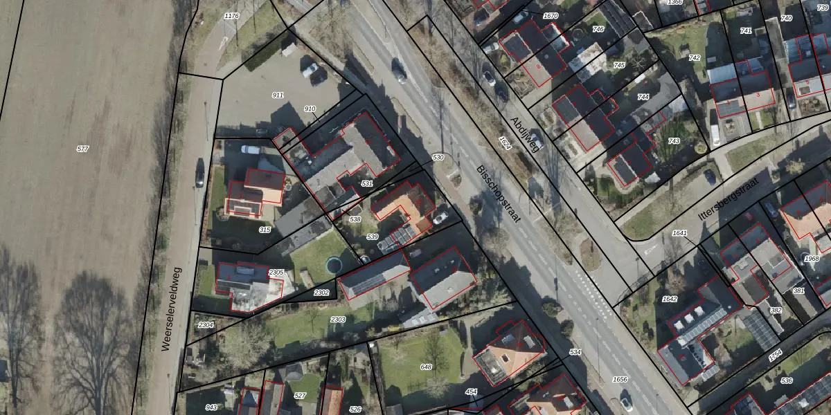 Gebruik de zoekbalk of klik op een perceel voor informatie over de adressen binnen dit perceel.