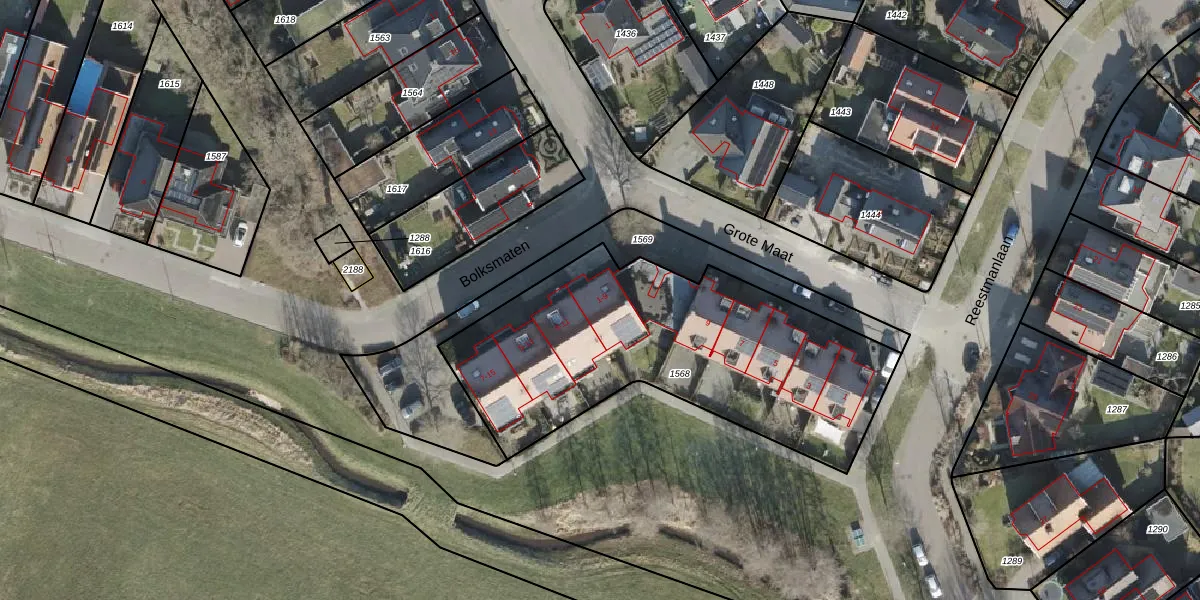 Het perceel waarop Bolksmaten 1 staat heeft een oppervlakte van 1612 m². Dit is een zeer groot perceel. De perceeloppervlakte wordt geregistreerd door het Kadaster. Gedetailleerde informatie over de maten van dit perceel kunt u vinden in het rapport Kadastrale kaart met maatvoering van Bolksmaten 1.