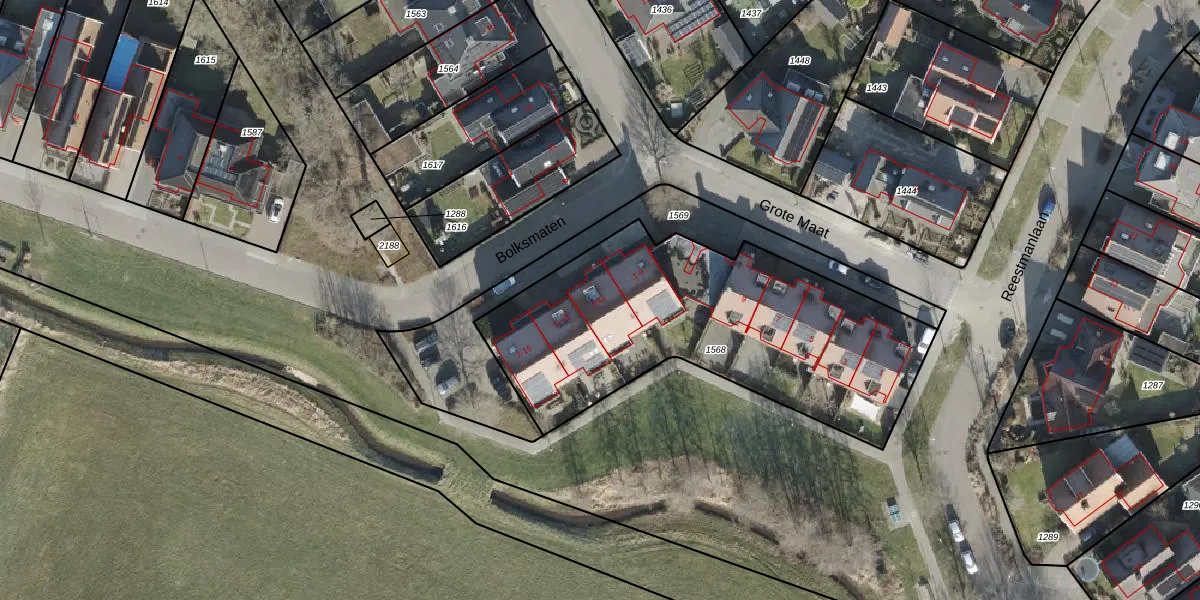 Het perceel waarop Bolksmaten 3 staat heeft een oppervlakte van 1612 m². Dit is een zeer groot perceel. De perceeloppervlakte wordt geregistreerd door het Kadaster. Gedetailleerde informatie over de maten van dit perceel kunt u vinden in het rapport Kadastrale kaart met maatvoering van Bolksmaten 3.