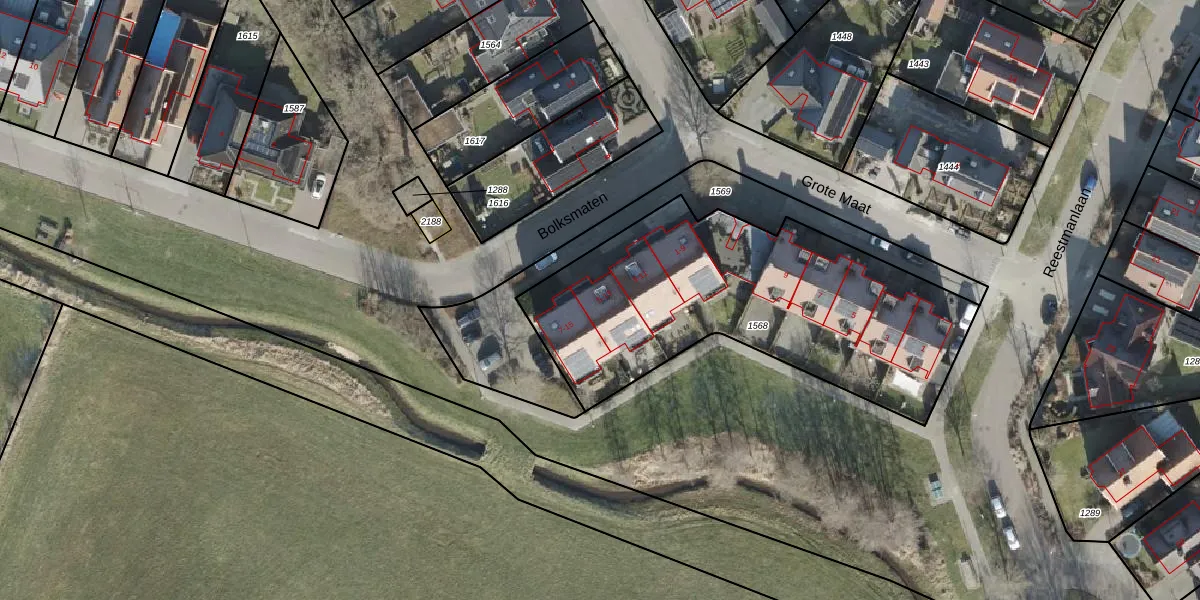 Het perceel waarop Bolksmaten 5 staat heeft een oppervlakte van 1612 m². Dit is een zeer groot perceel. De perceeloppervlakte wordt geregistreerd door het Kadaster. Gedetailleerde informatie over de maten van dit perceel kunt u vinden in het rapport Kadastrale kaart met maatvoering van Bolksmaten 5.