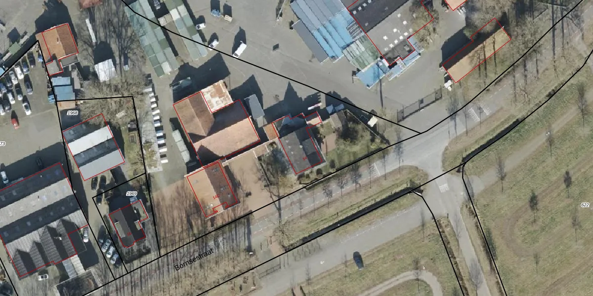 Het perceel waarop Bornsestraat 14 staat heeft een oppervlakte van 1,5 ha. Dit is een zeer groot perceel. De perceeloppervlakte wordt geregistreerd door het Kadaster. Gedetailleerde informatie over de maten van dit perceel kunt u vinden in het rapport Kadastrale kaart met maatvoering van Bornsestraat 14.