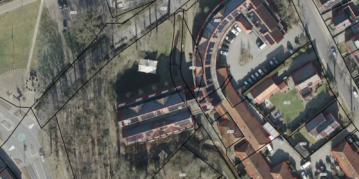 Het perceel waarop de Aanleg 2-009 staat heeft een oppervlakte van 2100 m². Dit is een zeer groot perceel. De perceeloppervlakte wordt geregistreerd door het Kadaster. Gedetailleerde informatie over de maten van dit perceel kunt u vinden in het rapport Kadastrale kaart met maatvoering van de Aanleg 2-009.