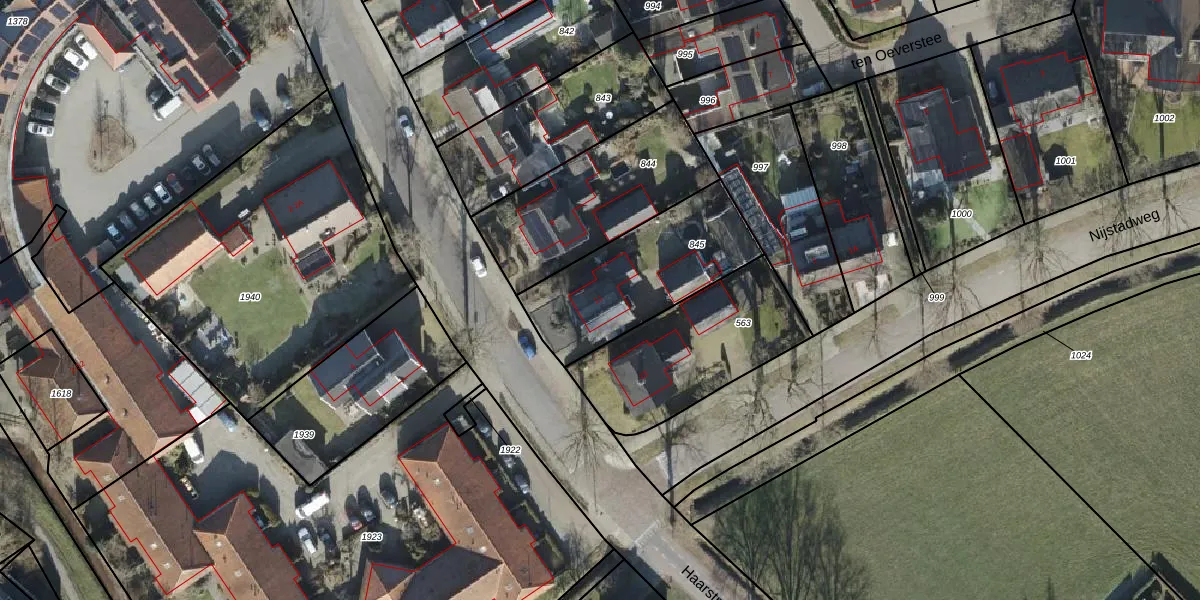Gebruik de zoekbalk of klik op een perceel voor informatie over de adressen binnen dit perceel.